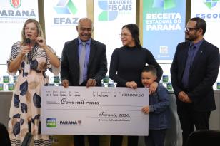 A Secretaria da Fazenda entregou nesta terça-feira (18), o prêmio de R$ 100 mil do Programa Nota Paraná ao ganhador João, sorteado no mês de novembro, durante a cerimônia de encerramento do projeto-piloto do Programa Municipal de Educação Fiscal nas Escolas de Jaguariaíva.