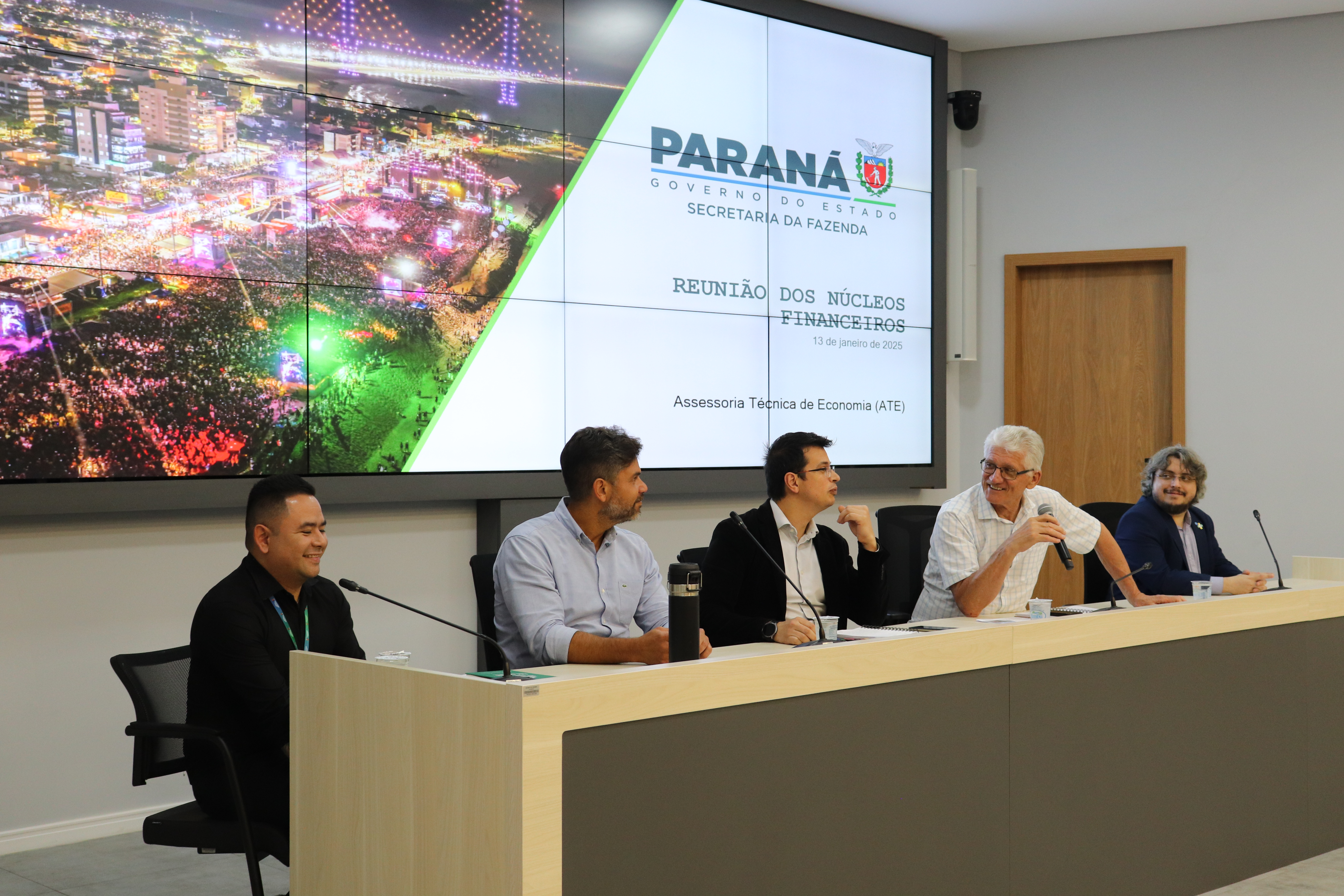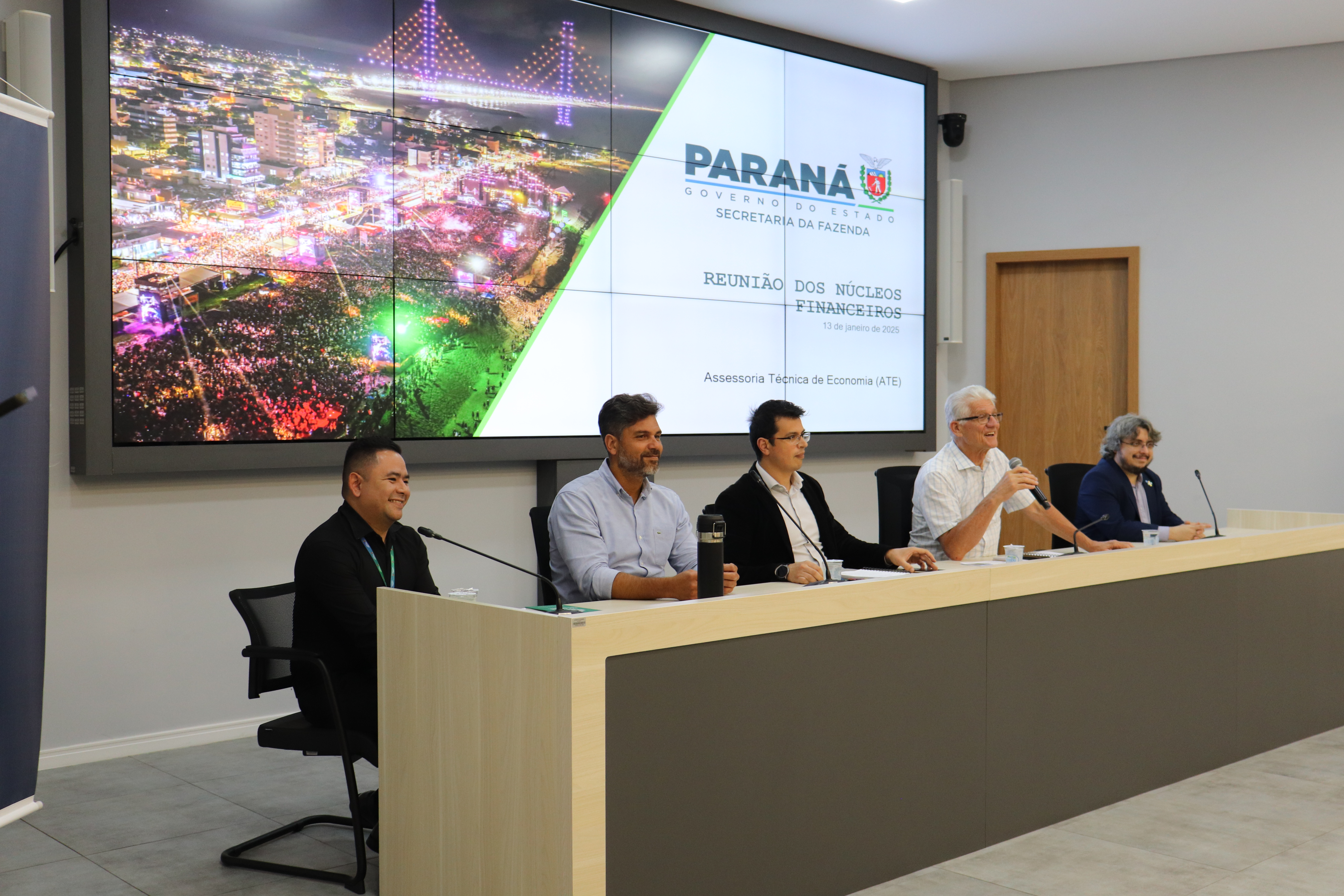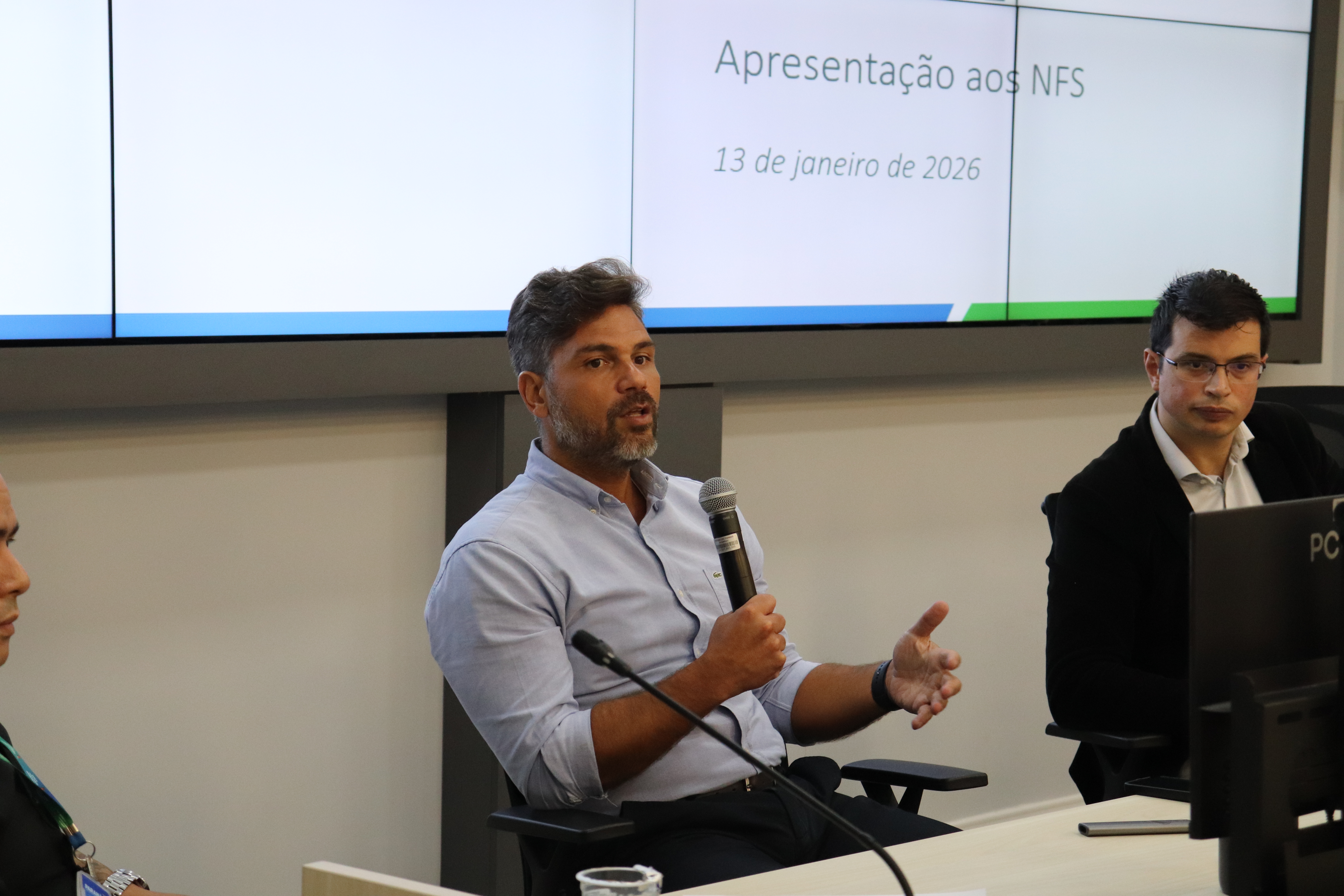 O encontro foi conduzido pelo coordenador dos NFS, Pedro Américo, e contou com a participação do secretário da Fazenda, Norberto Ortigara. Também estiveram presentes o diretor do Orçamento Estadual, Marcos Tadeu Cavalcante, e o diretor-adjunto do Tesouro Estadual, João Marques.