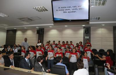 Alunos da Escola Municipal Afrânio Peixoto, de Ivatuba, tiveram uma participação especial na entrega dos prêmios do Nota Paraná. Cantaram e mostraram que aprenderam as lições sobre cidadania fiscal que receberam em 2016.