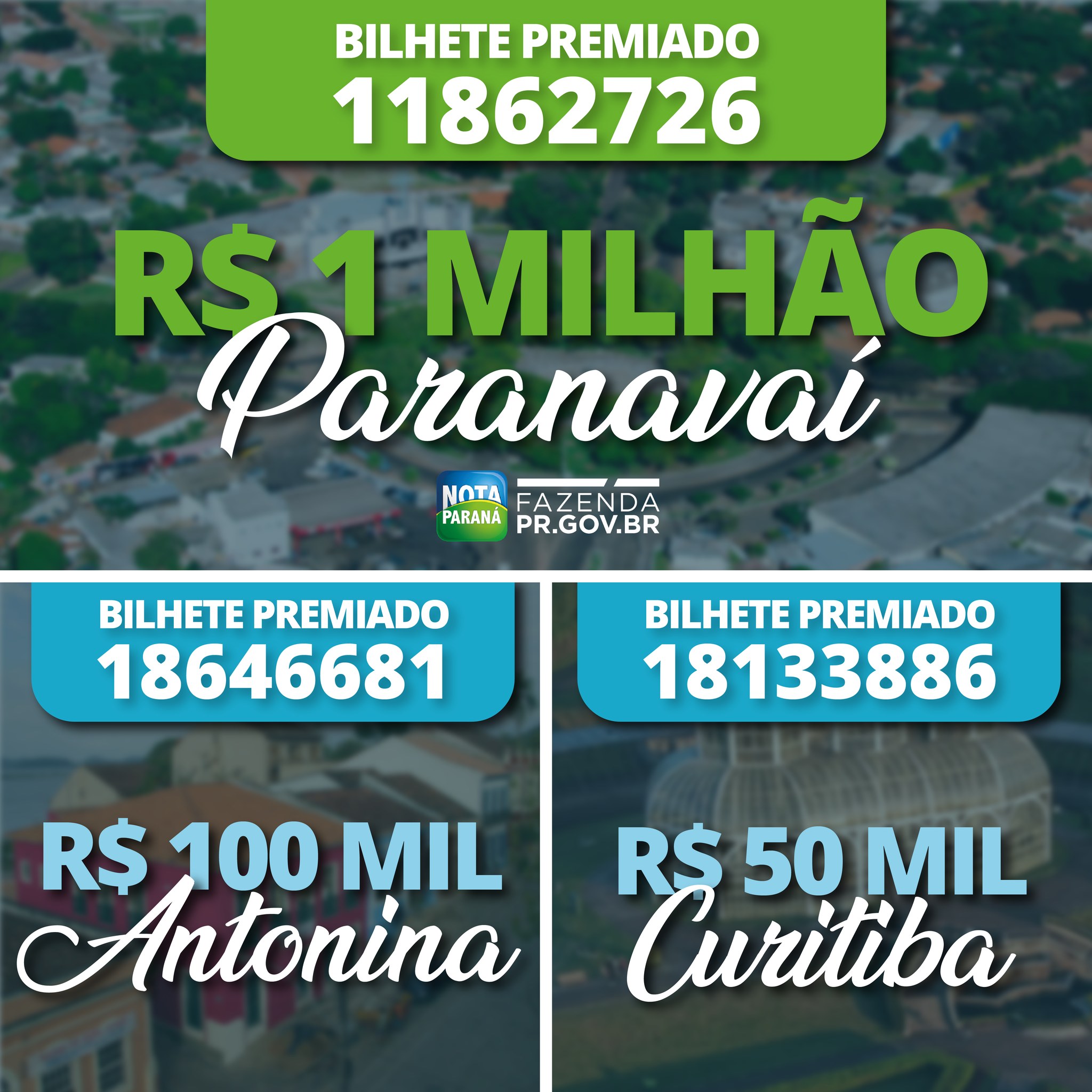 Programa do Governo do Estado, coordenado pela Secretaria da Fazenda, o Nota Paraná, sorteou o prêmio máximo de R$ 1 milhão para a cidade de Paranavaí. É a primeira vez que um morador do município do Noroeste do Estado leva o prêmio principal do programa, que existe há 8 anos.